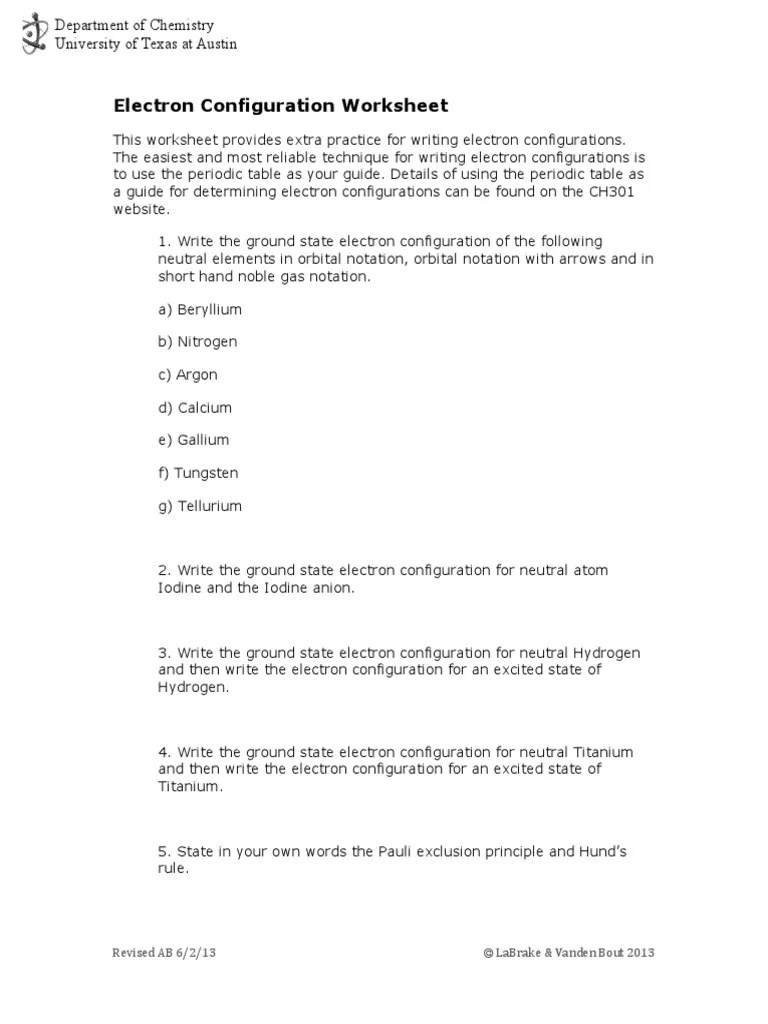 Electron Configuration Worksheet from s3.studylib.net Electron 0 create a neutral . In the space below, write the unabbreviated electron configurations of the. Orbital notation, add to my workbooks (20) 2 worksheets on electron configuration. Year 9 chemistry pdf workbook. View electron configuration worksheet from science grade 9 sc at mississauga secondary school. Atoms, elements and compounds worksheets (differentiated homework). This electron configuration worksheet will explain the easy way to figure out electron configurations for atoms and ions.